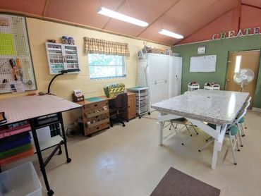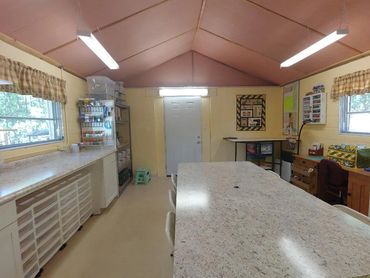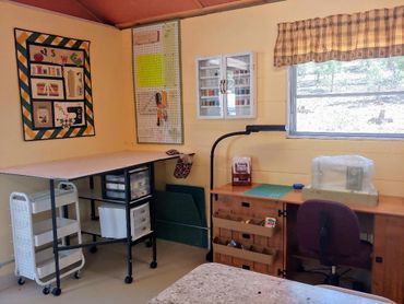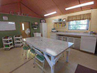 The Craft Room includes an outdoor patio area for those messy crafts or just relaxing and enjoying the forest.
